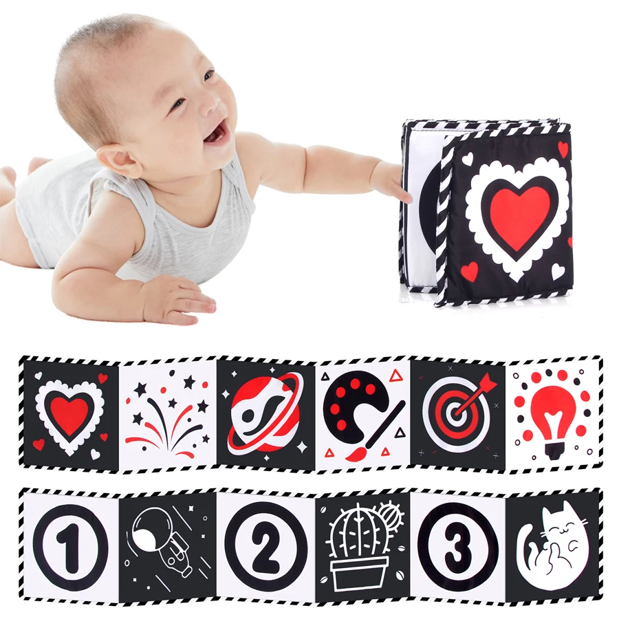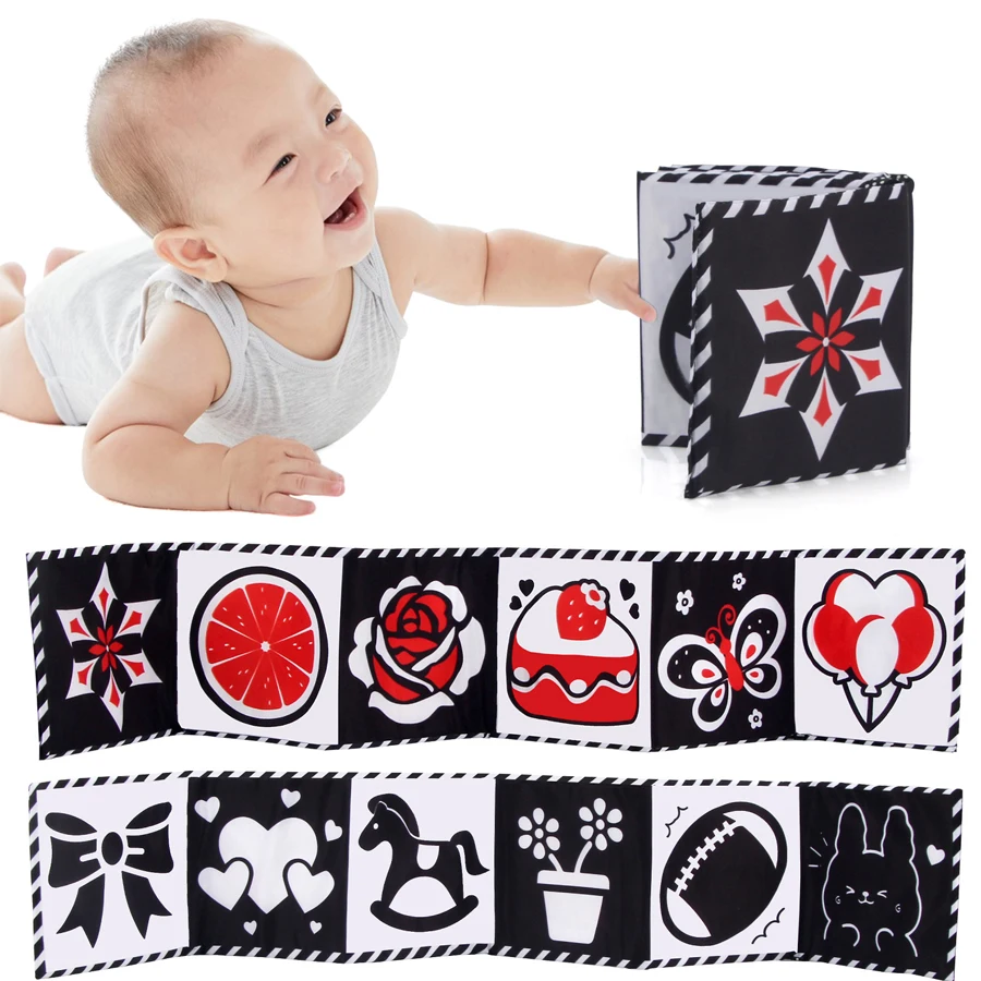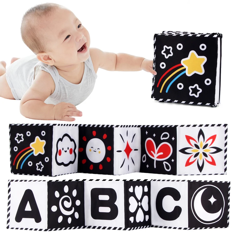 "كتاب من القماش للأطفال ألعاب أطفال عالية التباين من عمر 0 إلى 36 شهرًا ألعاب سرير الأطفال حديثي الولادة باللونين الأبيض والأسود كتب القماش الحسية لعبة مونتيسوري